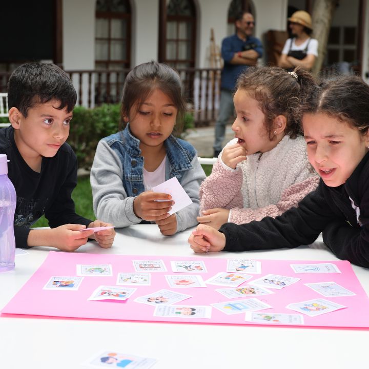 “Temiz gıda, adalet, sanat, bilim, para…” gibi kavramları içeren kartlarla çocuk grupları kendi hayali “yeni kıtalarını” kuruyor.