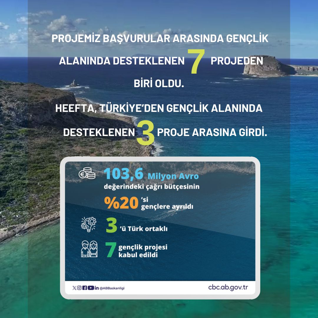 Interreg NEXT Akdeniz Havzası Programı (Interreg NEXT MED) kapsamında, gençlik alanında desteklenen 7 projeden biri olan HEEFTA, Türkiye’den seçilen 3 gençlik projesi arasında yer aldı. Program kapsamında, bir diğeri Muğla Sıtkı Koçman Üniversitesi olmak üzere, Muğla’da destek alan iki kurumdan biri olmaktan gurur duyuyoruz.