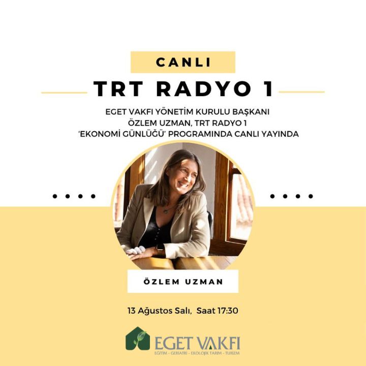 EGET VAKFI, 13-Ağustos-2024 tarihinde, TRT Radyo-1’de canlı olarak yayımlanan ‘Ekonomi Günlüğü’ programına konuk oldu. Yönetim Kurulu Başkanı’mız Özlem Uzman, bu yıl sekizinci defa düzenlenen EGET Vakfı Geleneksel Lavanta Hasat Festivali’nden ve vakfın iktisadi işletmesinin lavanta yağını nasıl katma değerli ürünlere dönüştürdüğünün hikayesinden söz etti. Uzman, EGET VAKFI’nın kuruluş amacına, verdikleri burslara ve bir sosyal girişimci olarak EGET VAKFI İktisadi İşletmesi’nin başarılarına da değindi.
