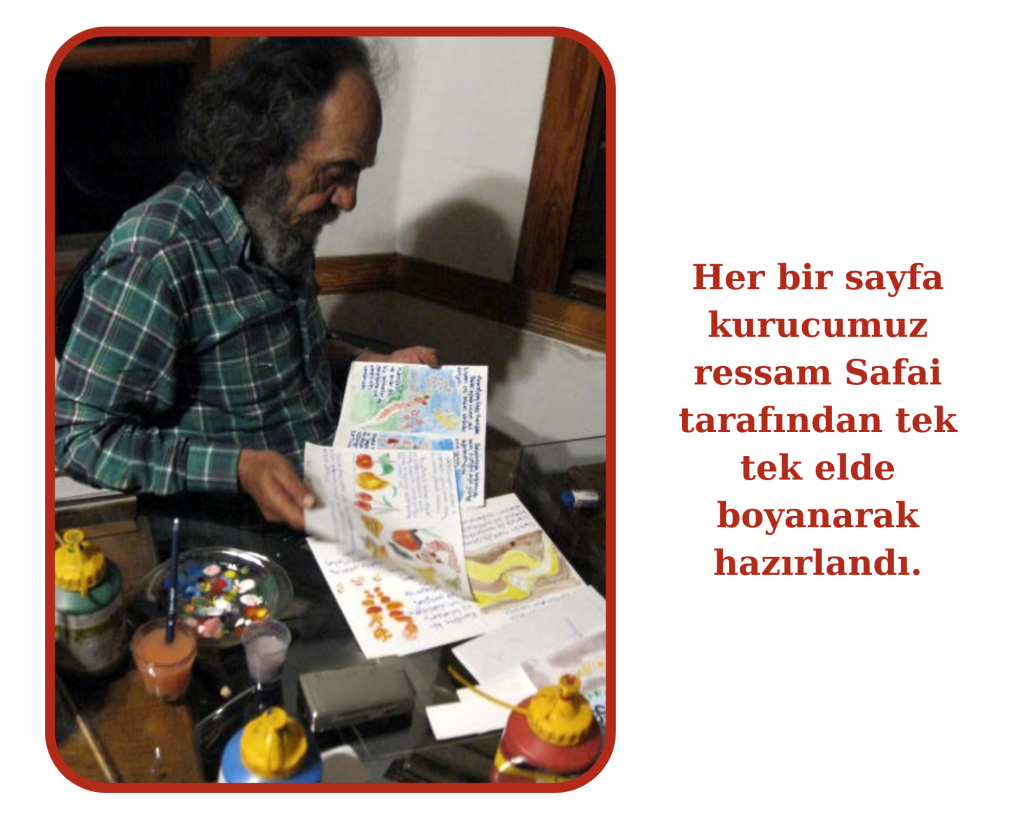 Her bir sayfa kurucumuz ressam Safai tarafından tek tek elde boyanarak hazırlandı.