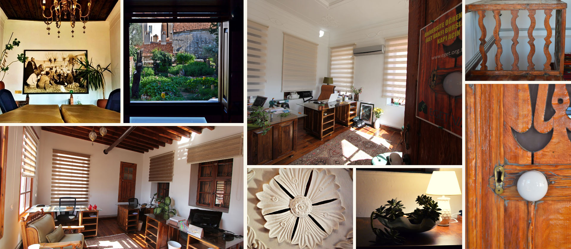 Sözleşmemiz gereği, 10 yıllık bir süre için vakıf merkezimiz olacak olan bina, 1894 yılında inşa edilmiş ve Muğla’da Hacı Latifler evi olarak tanınmakta imiş. Eski yapıların restorasyonu konusunda deneyimli bir mimar olan Kurucumuz Safai Özer, hem mesleki birikimini kullanması hem de binadaki çalışmalara sanatçı kişiliğini yansıtması sonucu, gerek binanın içinin restorasyonunda gerekse bahçesinin düzenlenmesinde gösterdiği çabayla, harap durumdaki bir yapıyı, yaşayan, soluk alan ve adeta bize, onu yaşattığımız için teşekkür eden bir yapıta dönüştürmüştür.