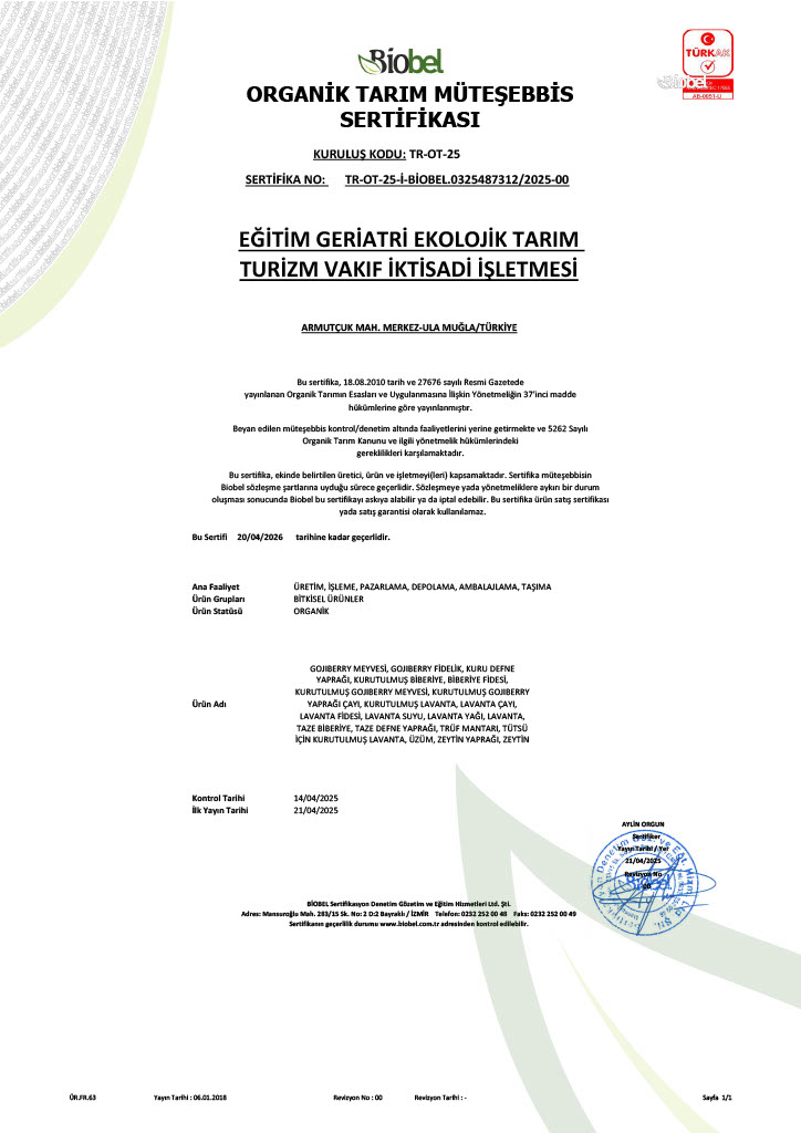 2022 yılının Haziran ayında Armutçuk Tarım İşletmemiz, Organik Tarım Sertifikası almaya hak kazandı. Lavantalarımızdan organik yağ elde edebilmek üzere kurduğumuz distilasyon ünitemiz de sertifikalandırma kuruluşu Ecocert tarafından sertifikalandırıldı. Böylece, İktisadi İşletmemiz yine bir ilki gerçekleştirerek Muğla’nın ORGANİK SERTİFİKALI İLK DİSTİLASYON ÜNİTESİNİ kurmuş oldu.