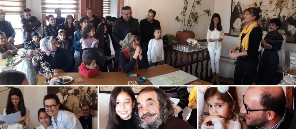 Görmüş olduğunuz fotoğraflar, EGET Vakfı Genel Merkezi binasında gerçekleşen ve öğrencilerin aileleriyle birlikte katılmış olduğu Kapısız Kitaplıklar Kitaplar Caddelerde ödül töreninde çekilmiştir. Öğrencilerin yazmış olduğu kompozisyonlar ya da yapmış oldukları resimler ödüllendirilerek her bir öğrenciye Mütevelli Heyeti üyelerimizce armağanları sunulmuş heyet üyeleri, öğrenciler ve aileleri hem EGET Vakfı’nı hem de yöneticilerini yakından tanıma fırsatı bulmuşlardır.
